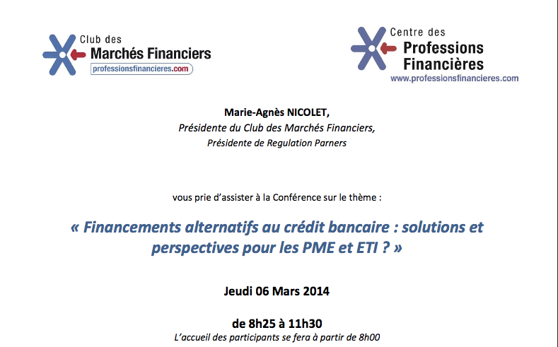 Le Club des Jeunes Financiers a le plaisir de vous proposer une rencontre avec Guillaume Duval, rédacteur en chef d'ALternatives Economiques, qui a accepté de discuter avec nos membres sur le thème du "modèle allemand" sui ...Conférence : « Financements alternatifs au crédit bancaire : solutions et perspectives pour les PME et ETI ? »